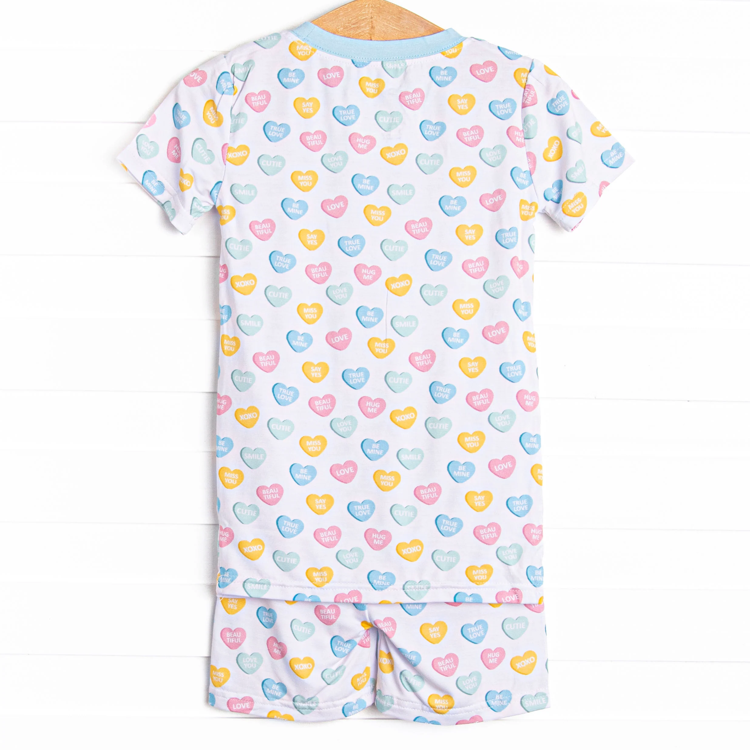 Candy Hearts Bamboo Pajama Short Set, Blue