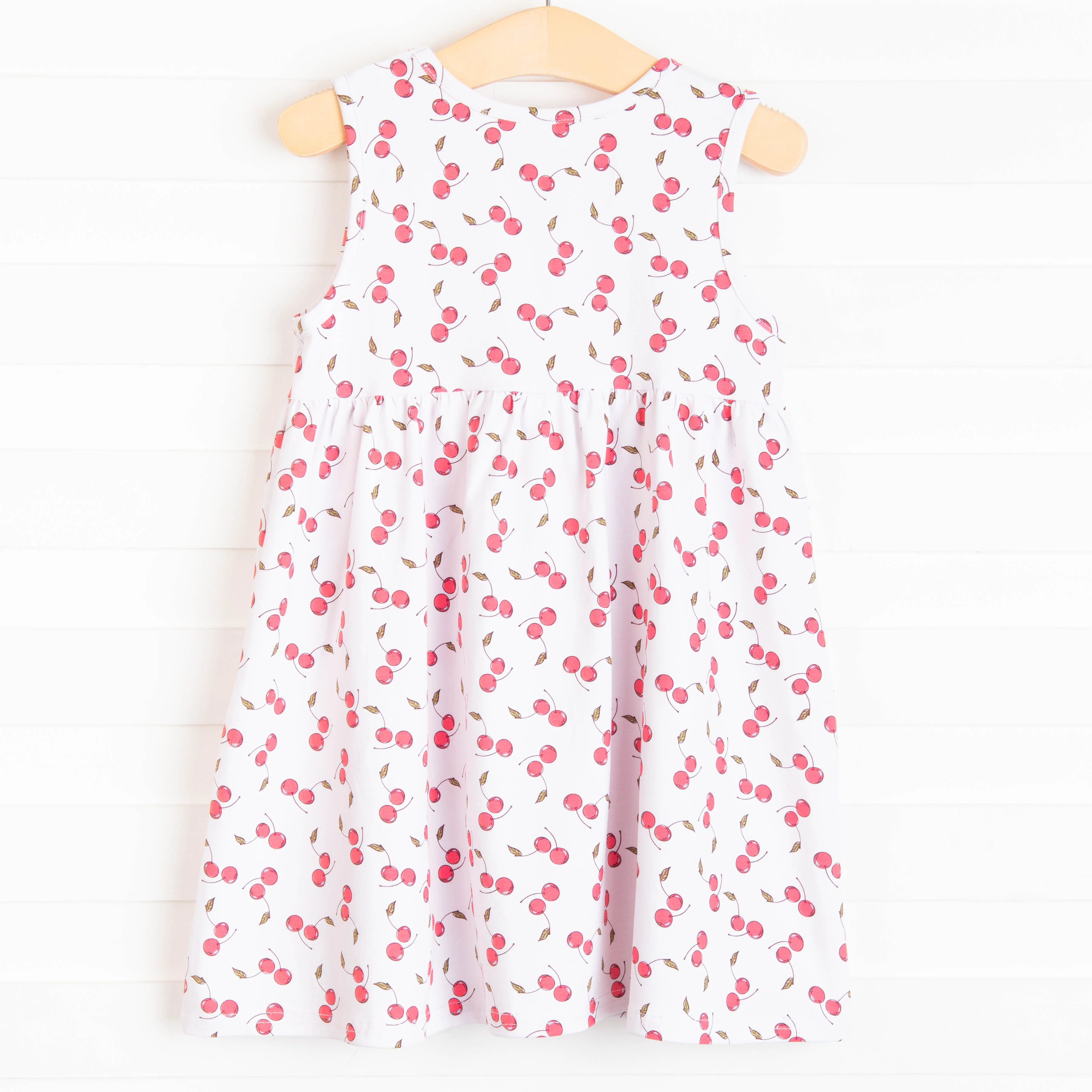 Your little girl is the cherry on top! It features the cutest cherry pattern, no sleeves, and the softest material. The sweetest summer outfit! SIZE GUIDE