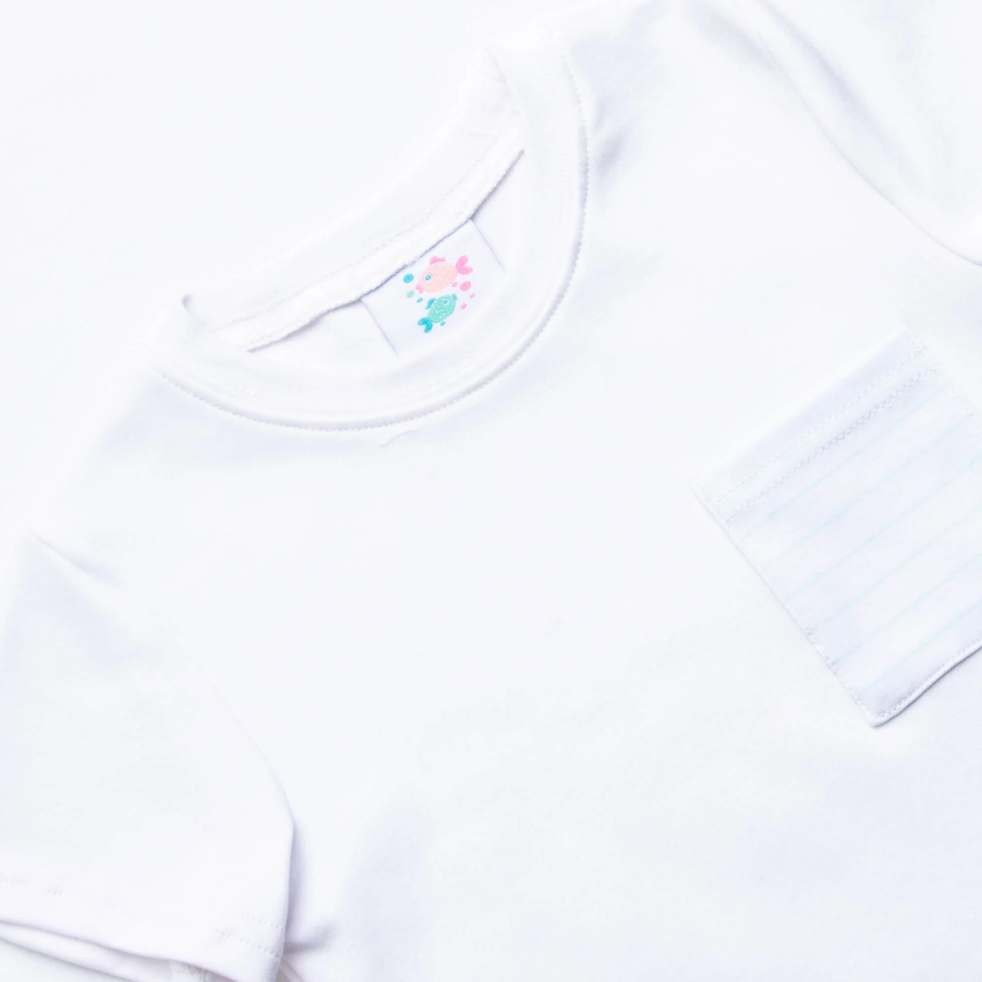 The pocket shirt boasts a fun, mint green stripes front pocket and is perfectly paired with comfy and classic mint striped pocket shorts. This precious 100% Pima Cotton set is an absolute must have and will quickly become an everyday favorite! SIZE GUIDE