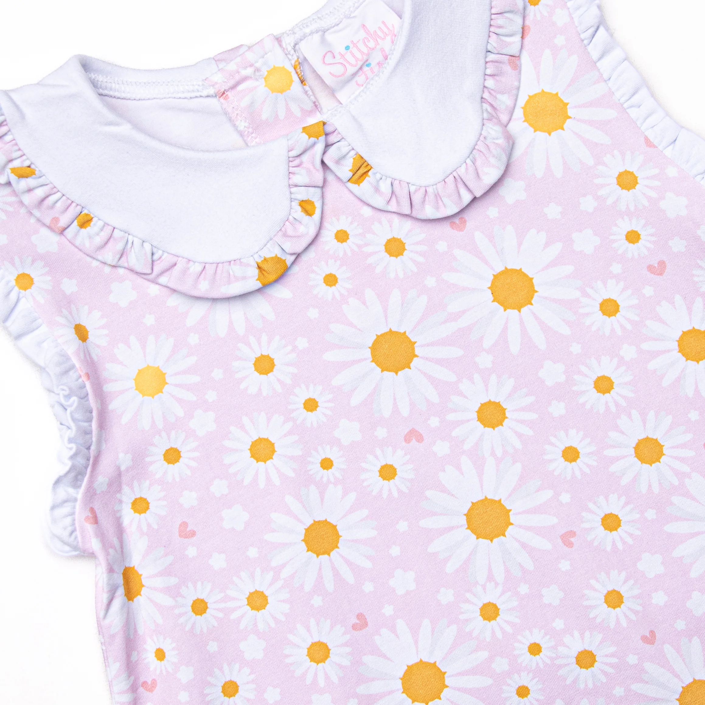 She will look darling with Dotted with Daisies! This dress features a pink daisy print, a peter pan collar, and ruffle trim. Your little flower will bloom in this dress!