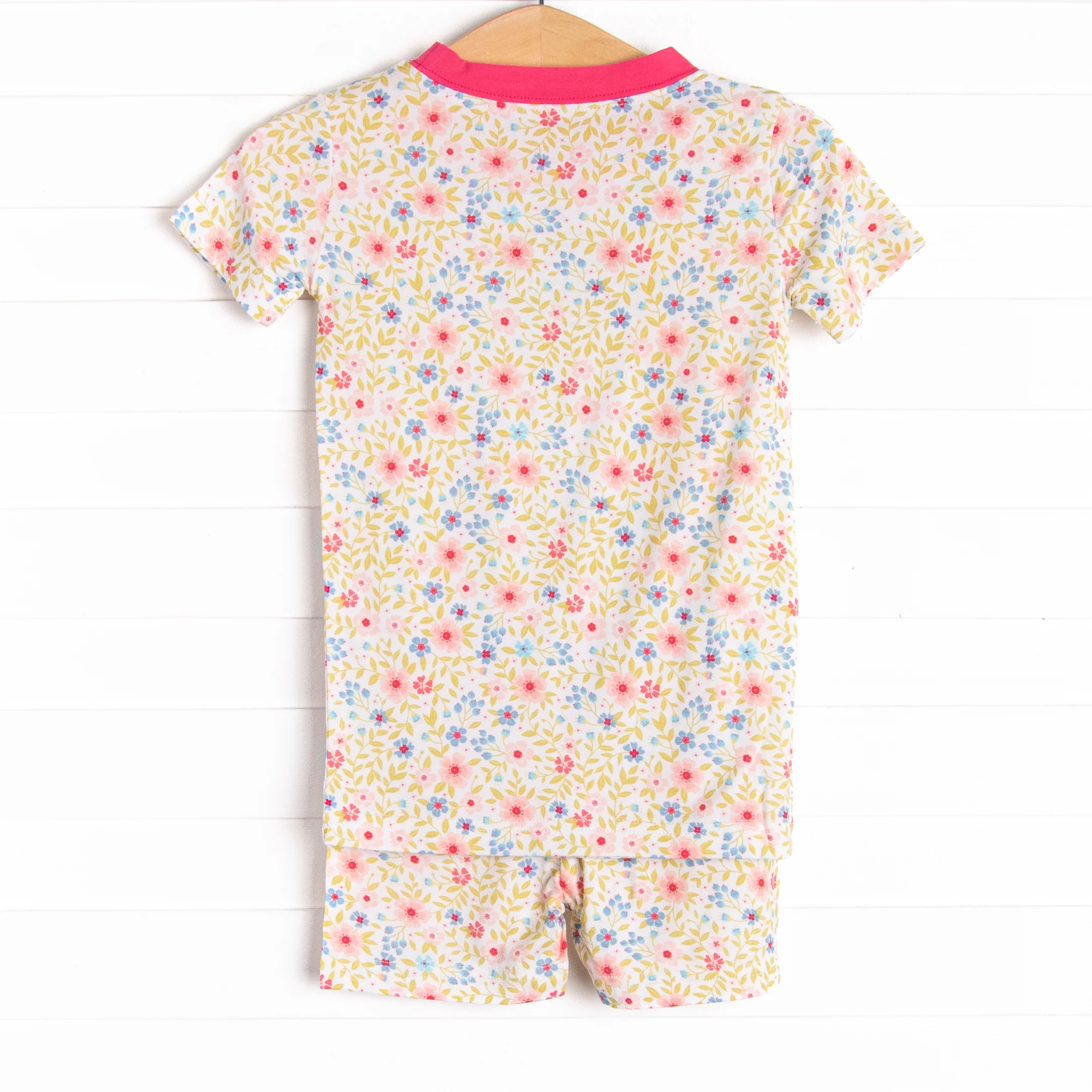 Fuchsia Florals Bamboo Pajama Short Set, Pink