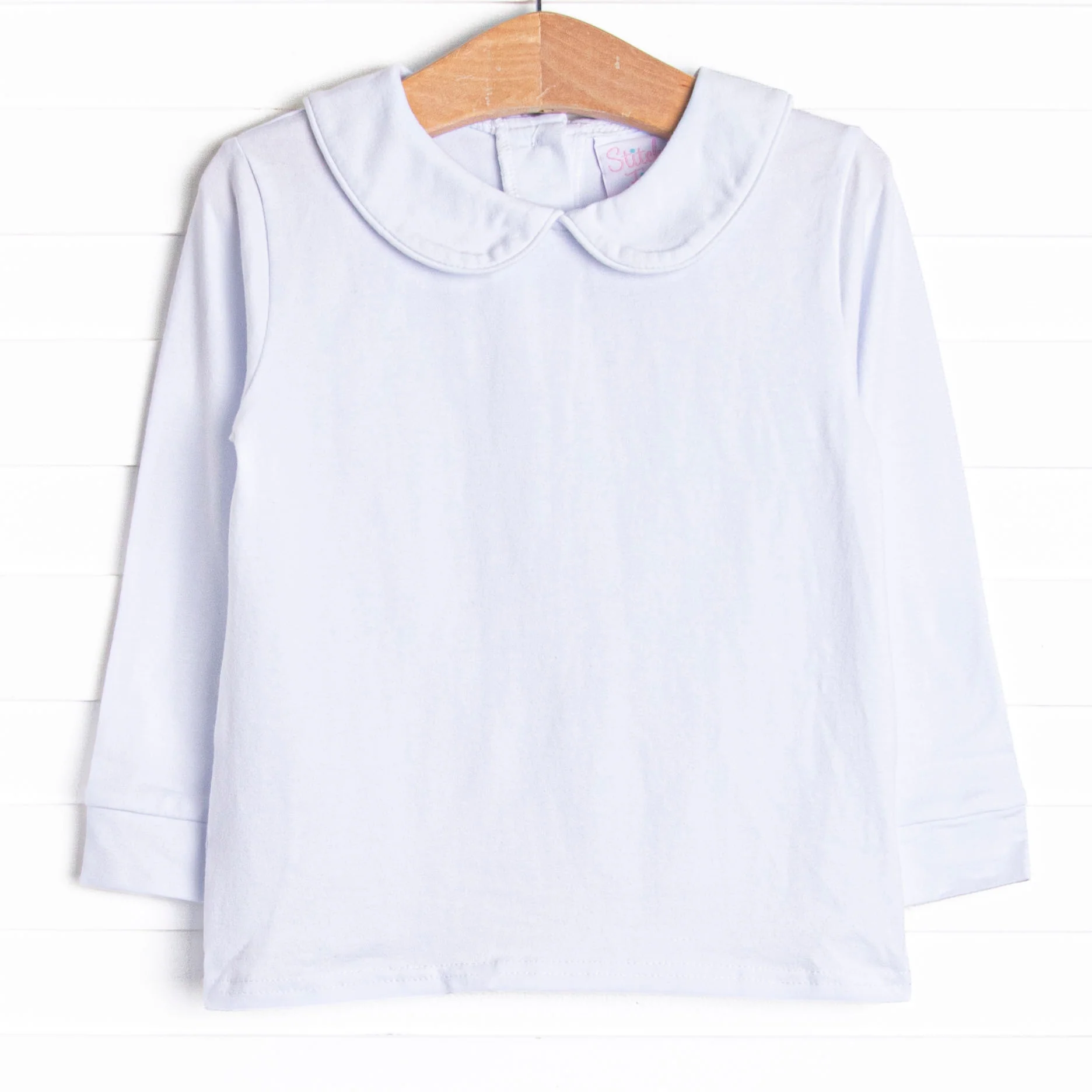 Gentry, you are a classic, layering basic that instantly catches the eye! A rounded Peter Pan collar with a white, light blue, and red piping makes this wardrobe essential perfect for dressing up or for everyday wear.
