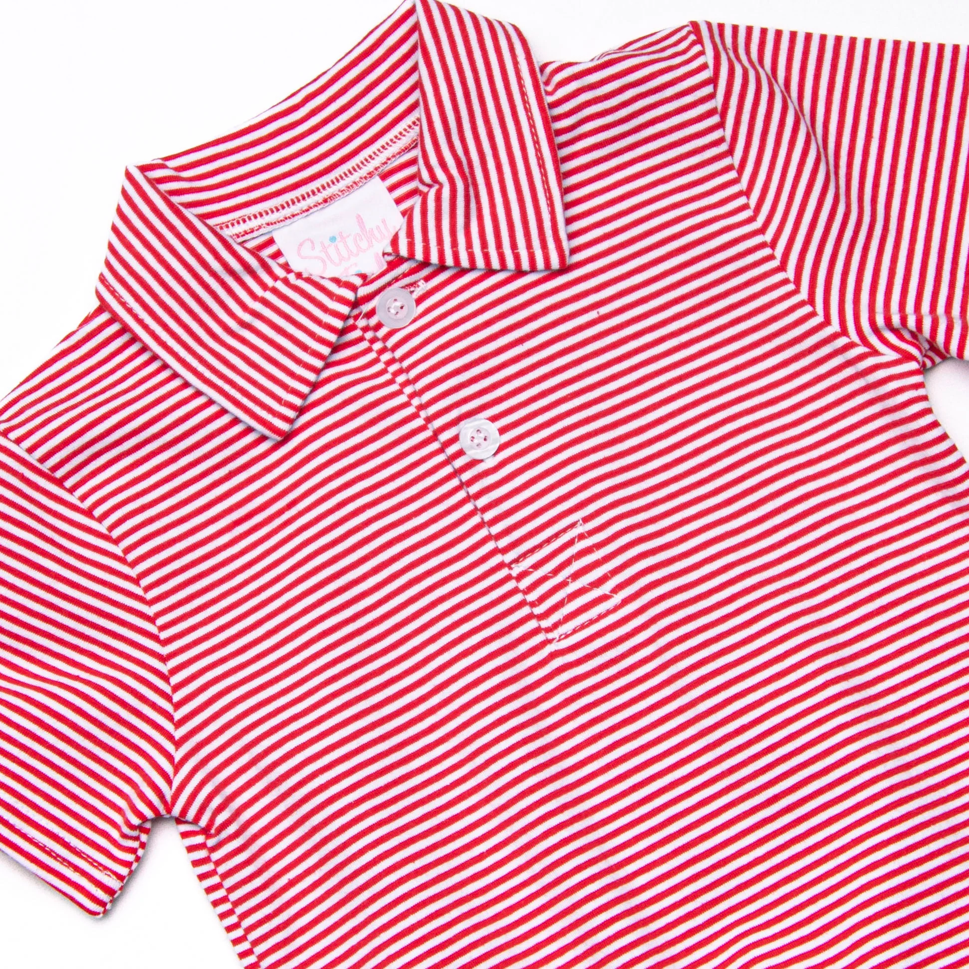 The Levi Short Romper is a cozy classic! The romper features soft knit material, sweet red stripes, and snaps in the stride to make changing a breeze. Your little one is going to love this romper!