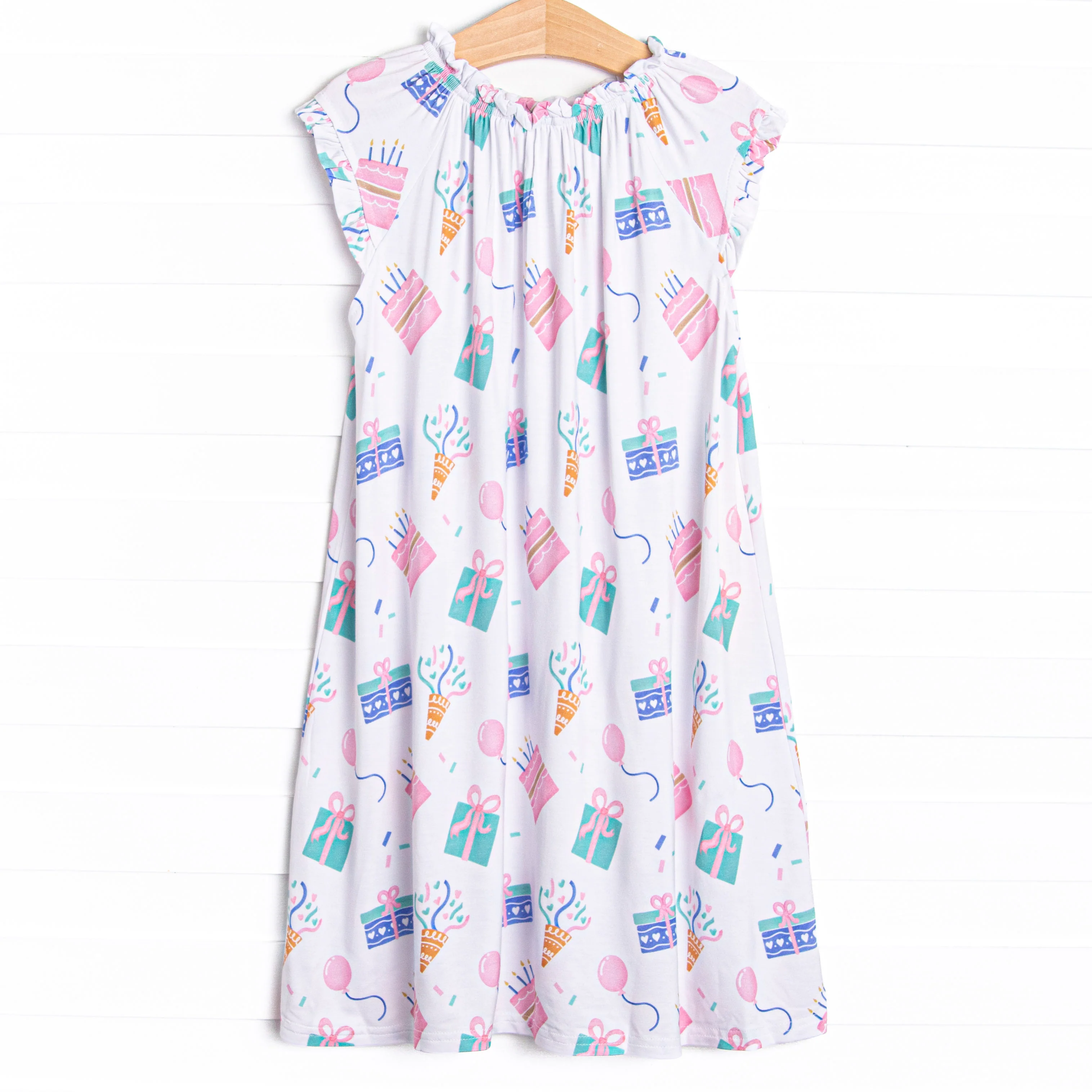 The most precious Party Favor Fun! This gown is made of the extremely soft, stretchy bamboo viscose fabric that feels like butter and features a festive birthday print. This gown will be your little one's favorite cozy addition!