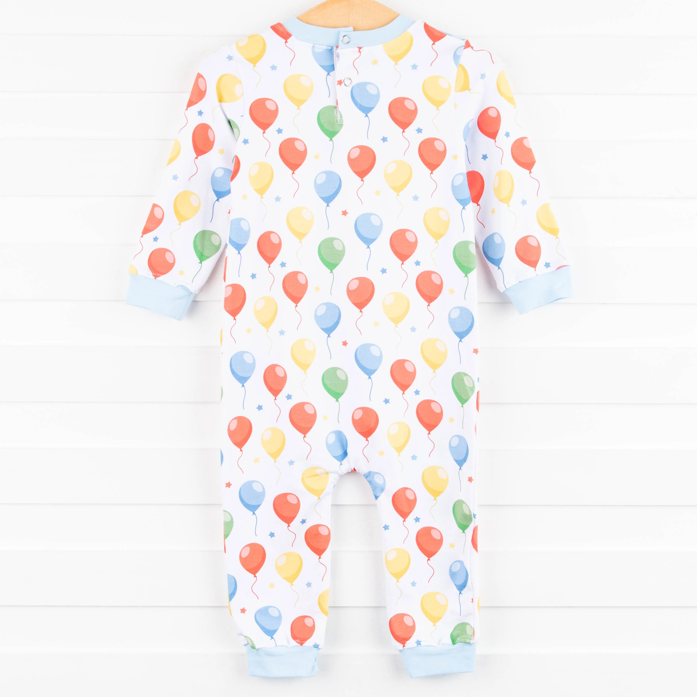 It's time to party! This romper features long sleeves, light blue trim, and the most exciting party time pattern. This romper is worth celebrating! SIZE GUIDE