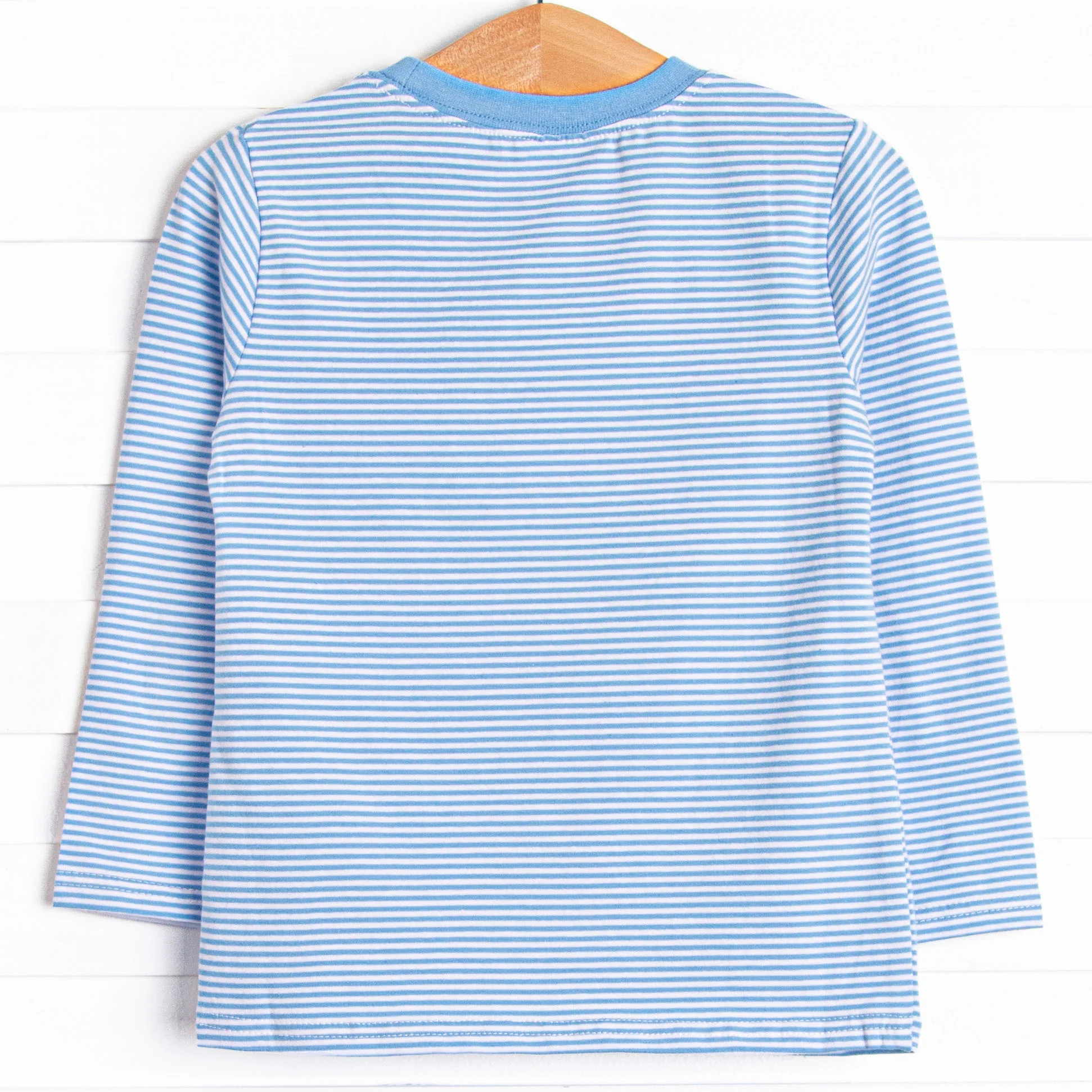A Scoop of Love! This top features a blue striped print, long sleeves, and an excavator applique. This top is sure to steal your heart!