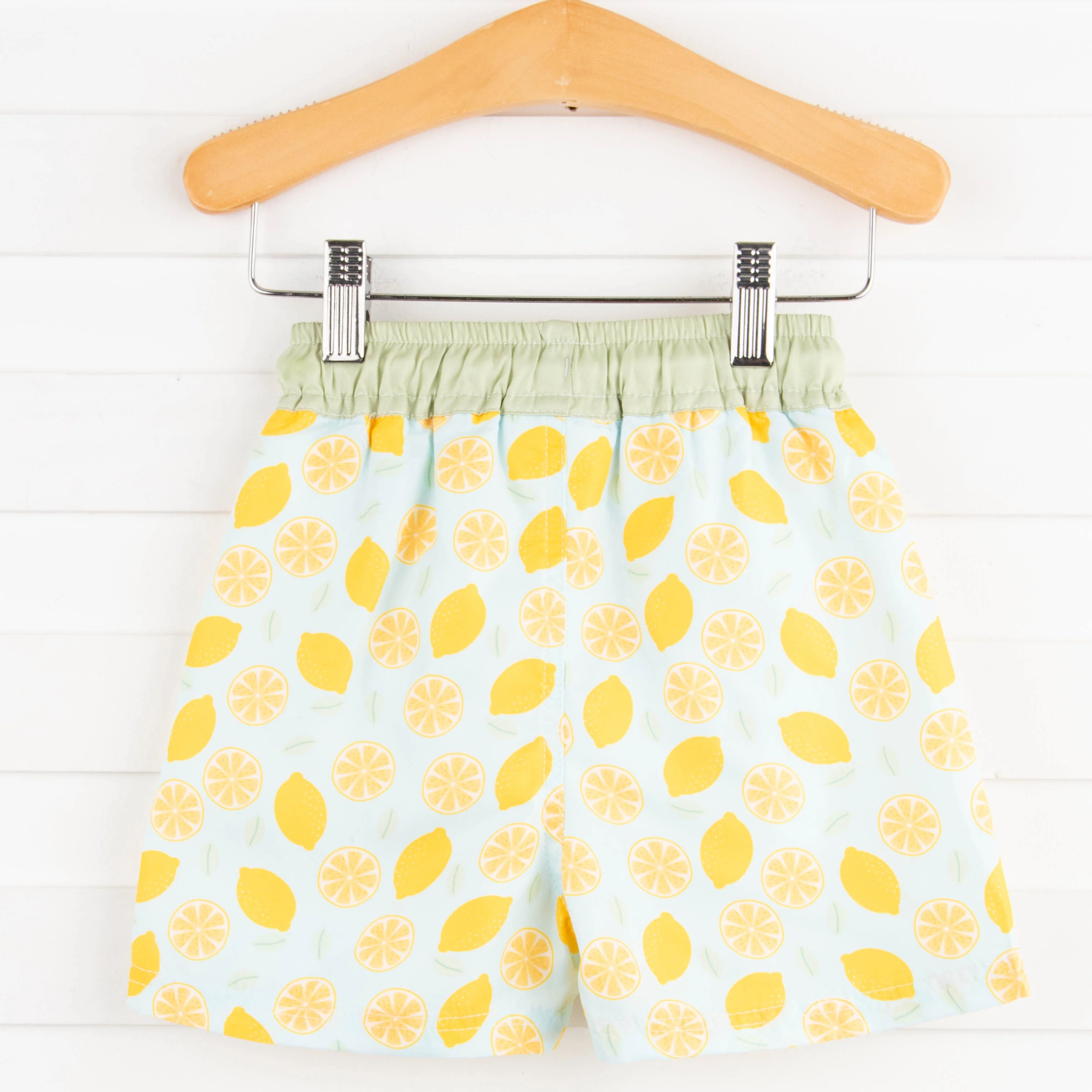 He won't be sour for long in our new swim styles! The trunks feature an elastic waistband, a drawstring, and a citrus inspired print. Perfect for pool and ocean fun all spring and summer long! SIZE GUIDE