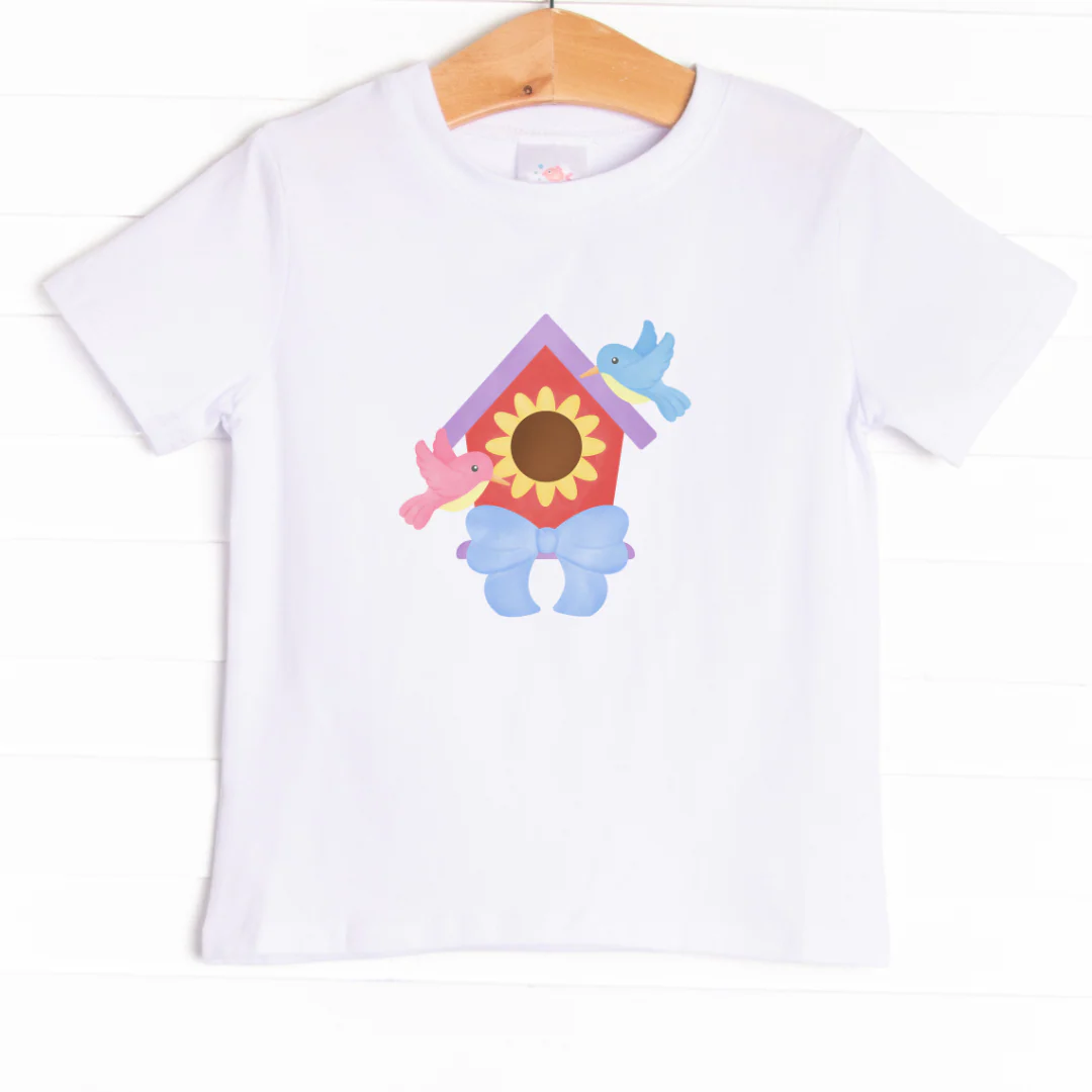 The Sweetest Spring's Song! The shirt is featured in four colors: Soft Blue, Heather Gray, Ballerina Pink, and White. Your little one is going to love this soft, breathable shirt for all of their Spring and Summer fun!