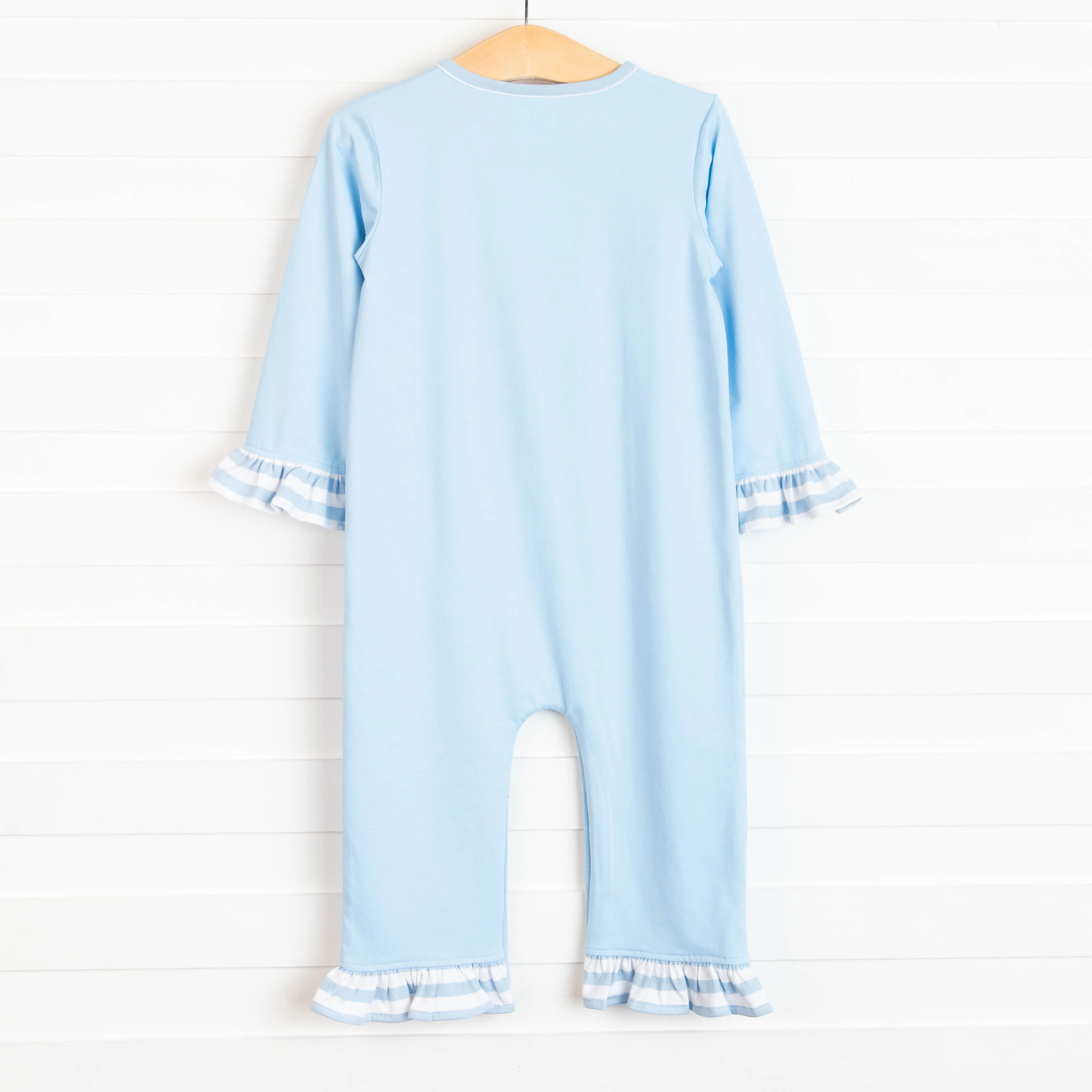 Stand Tall Applique Ruffle Romper, Blue