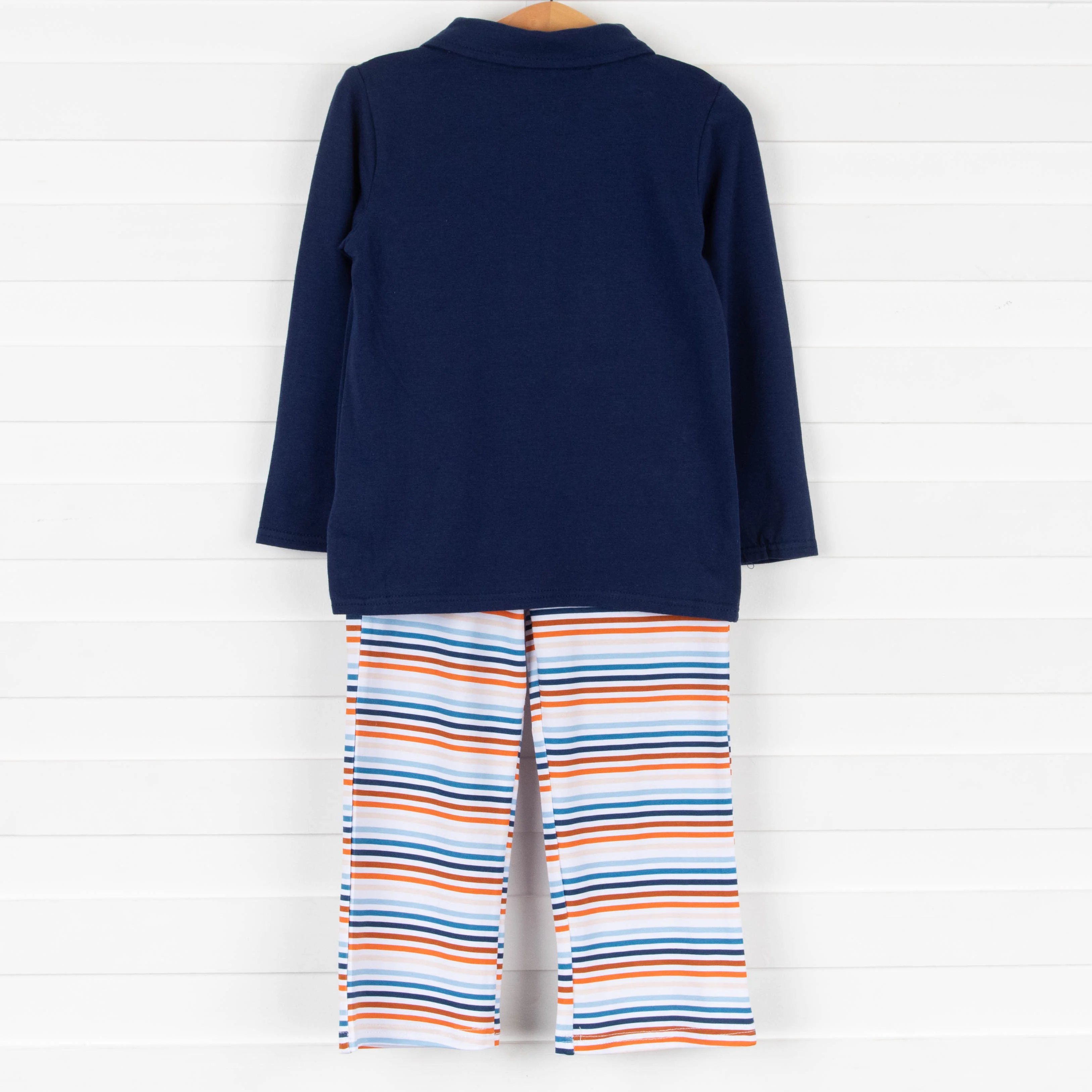 Who doesn't love a fall sunset? This adorable pant set features the cutest collared shirt, sunset striped pants, and long sleeves. We are in love with this new fall arrival! SIZE GUIDE