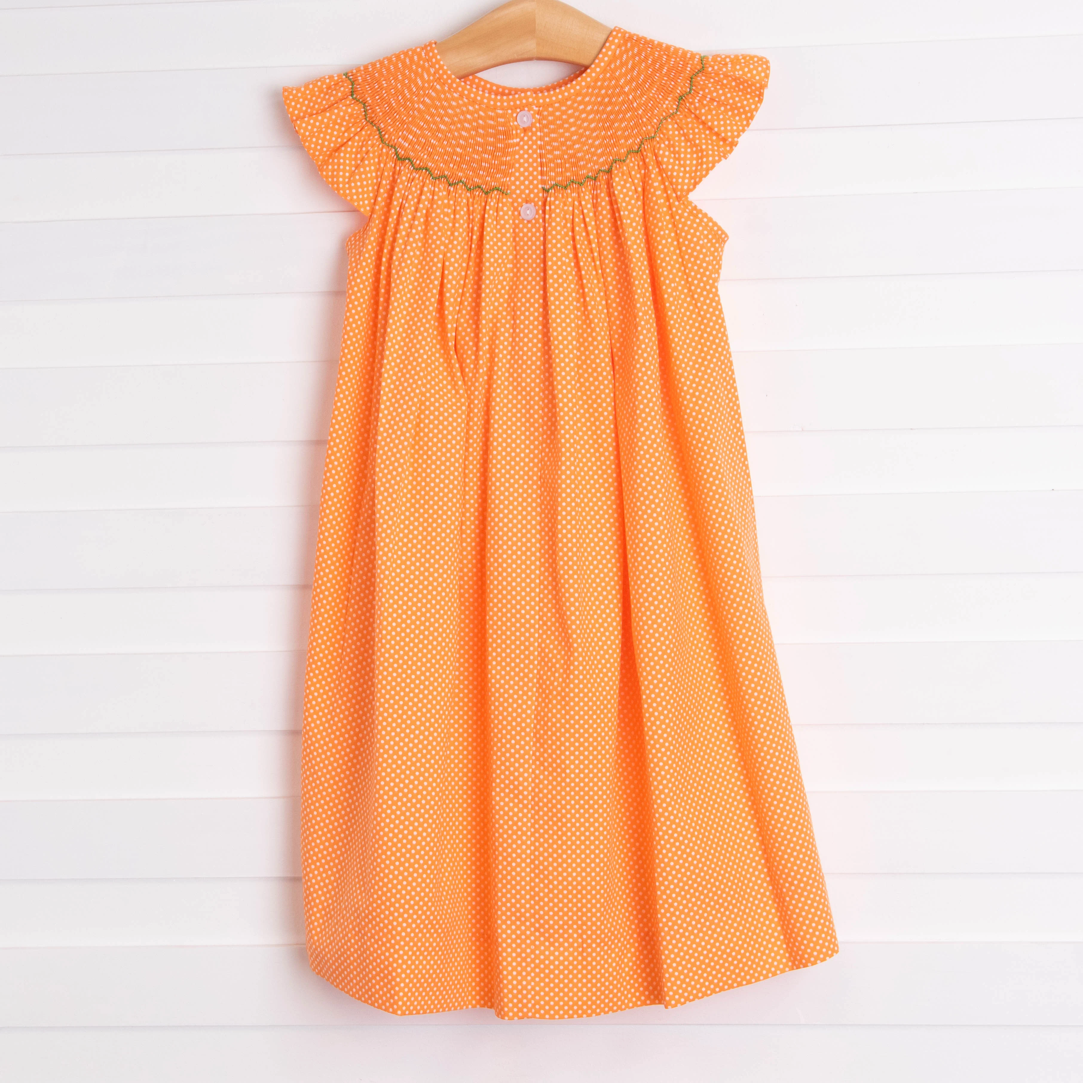 Trick or Treat Smocked Dress, Orange Bitty Dot